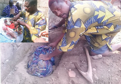 The police escorted Mr Folorunsho to his compound where the baby’s corpse was buried and he was then asked to exhume the corpse.
