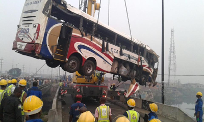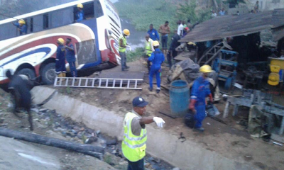 a luxurious bus plunged into canal at Owode Elede, Ikorodu Road